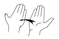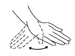 d – Com a sua mão aberta e virada para baixo, gentilmente mova o seu pulso de um lado para o outro, com o movimento mais amplo possível. Mantenha a posição nos extremos por quatro segundos e repita três vezes.