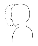 b – Movimento da cabeça: O objetivo do movimento da cabeça é alongar os músculos nos ombros, peito e pescoço. Sente ou fique de pé de forma ereta. Sem levantar o queixo, leve sua cabeça para trás. Você está fazendo o exercício certo se você sente uma pressão contra o seu queixo. Segure por 20 segundos e repita 7 vezes.