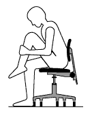 g – Quadril: Sente com uma perna sobre a outra. Posicione o seu braço ou cotovelo no lado de fora da perna cruzada. Gentilmente aplique pressão, enquanto olha para o lado oposto. Repita com a sua outra perna.