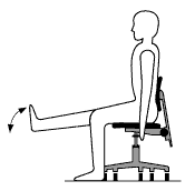 e – Levantamento de perna: Sente de forma reta na cadeira, de forma que suas costas não toquem o encosto da cadeira. Posicione um pé no chão. Com a perna reta, levante um pé alguns centímetros do chão. Segure por um momento e retorne o pé para o chão. Repita com a outra perna. Este alongamento sentado na cadeira vai melhorar a sua circulação sanguínea.