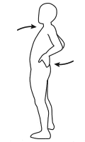 f – Alongamento de pé: quando de pé, mantenha seus joelhos levemente dobrados. Coloque suas mãos na lombar e gentilmente empurre sua lombar para frente enquanto se curva um pouco para trás.