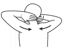 e – Para o peito, posicione suas mãos na nuca e contraia os seus ombros juntos para trás.