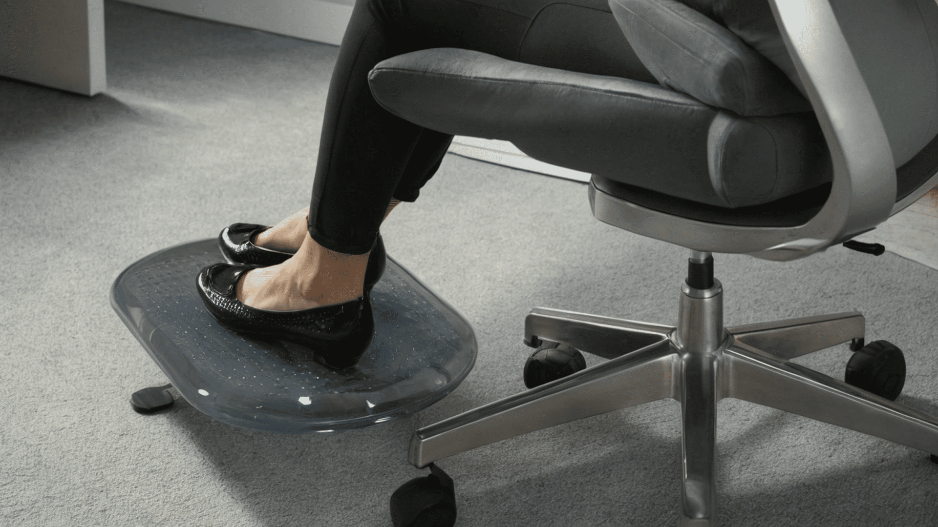 Se você passa muito tempo sentado, um descanso para os pés pode ajudar a aliviar a pressão nas pernas e pés.