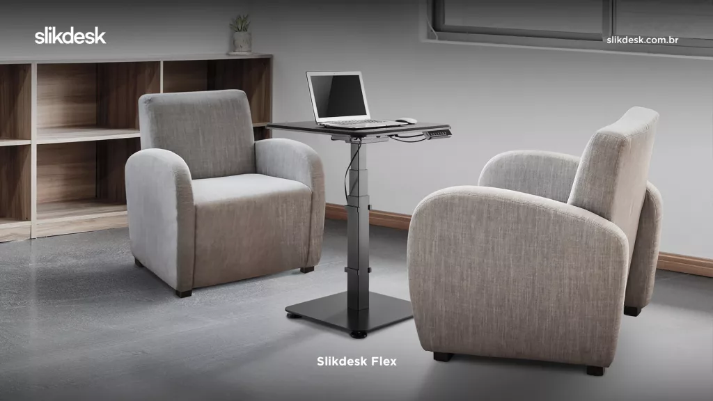 Compacta e extremamente prática, a mesa com regulagem de altura elétrica Slikdesk Flex 2 é uma excelente opção para ganhar saúde e produtividade por um meio prático e elegante.