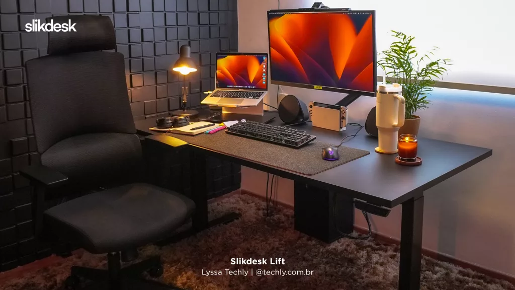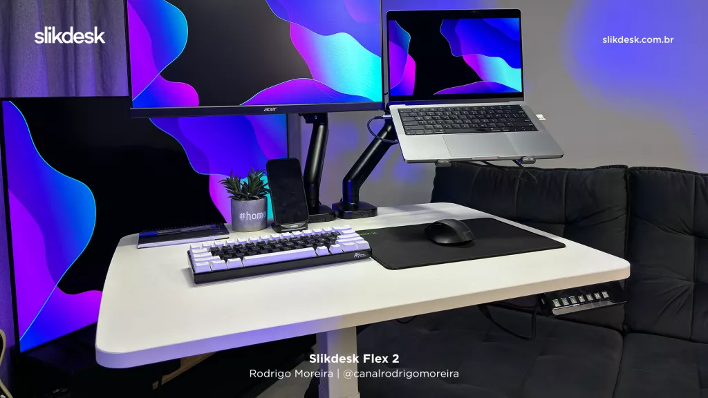- Elegância que você escolhe: complete seu setup com tampos Slikdesk, ou de terceiros, de vários tamanhos e cores para criar um ambiente único.